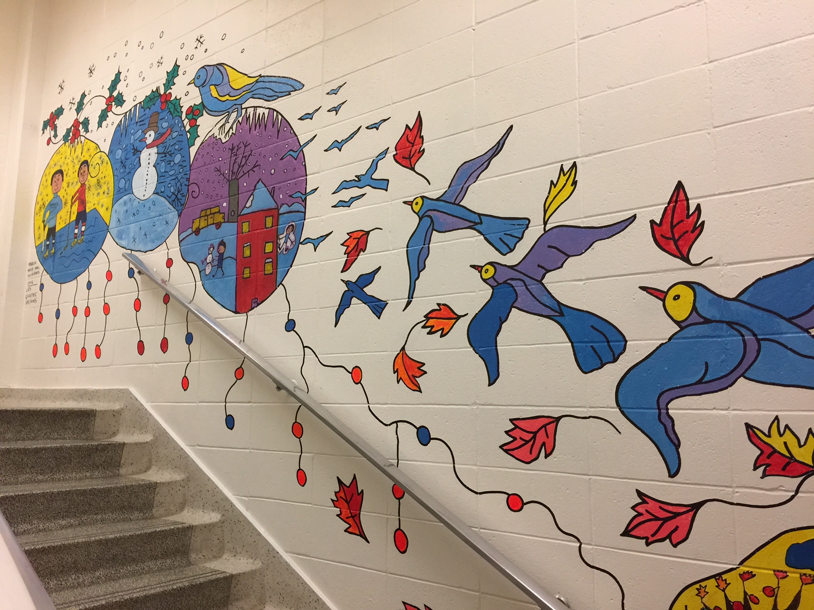 The themes selected were the values of the school and the four seasons. Each theme illuminates the staircases of our school!